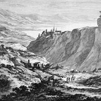 On aperçoit, au fond, l'étang bordé de quelques arbres et, au-delà, à g. de Rousseau, un château sur une colline et, à dr. un hameau avec un clocher». (FM) - id (dcterms:identifier)