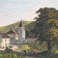Vue du presbytère de Bossey où J. J. Rousseau a passé sa jeunesse chez le pasteur Lambercier.