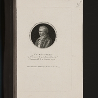 Contre la paroi de gauche, derrière Rousseau, se trouvent deux rayons de livres, dont le Contrat Social et quatre volumes, marqués au dos Nouvel. Héloïse.
