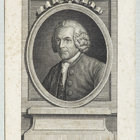 Le portrait se trouve dans un médaillon ovale, suspendu par un nœud de ruban à uncadre rectangulaire; le médaillon repose sur une console où devrait être inscrit le nom du philosophe; le tout est entouré d'un trait carré.» (FM)