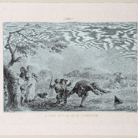 Gravure (en contretype) à la manière noire colorée (en bleu)