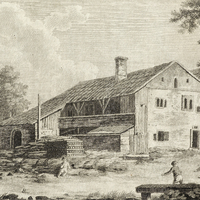 - «MAISON DE J.J. ROUSSEAU À MOUTIERS-TRAVERS. / Ce Philosophe est sur un banc, proposant des Gateaux à des Enfans pour prix de la Course.» Tableaux de la Suisse N° 10