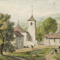 Vue de la maison natale de J. J. Rousseau à Genève, isolée dans la nature.