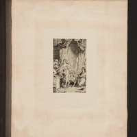 - Les environs d'Ermenonville. Vaste paysage, au centre, un cours d'eau serpente et tombe en une petite cascade. De part et d'autre des arbres et buissons. Une femme assise garde des chèvres et des moutons. Au loin. un couple s'approche de l'eau. Au fond, des collines et quelques maisons