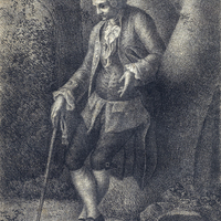 Contre-épreuve de la célèbre planche «Le Méridien» --où, à Montmorency, Emile découvre l'orientation -- mais ici seul Rousseau apparaît appuyé à un arbre. - id (dcterms:identifier)