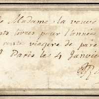 Vue de la maison de la Grand-Rue à Genève, avec le portrait de Jean-Jacques inspiré de celui de La Tour et la signature de Rousseau