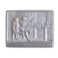 Avers: JEAN-JACQUES ! AIME TON PAYS. Le père de Rousseau lui montre la ville de Genève par la fenêtre ouverte de son atelier. Signé à g.: A.J.G.