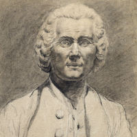 «Grand dessin original au crayon rehaussé de craie [sur papier ancien], de la fin du XVIIIe siècle représentant le buste de Rousseau de face», costume à la française, sans signature.