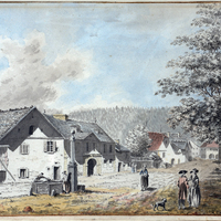 Vue de la Grande Rue par Louis de Marval monogrammée LM, d'après un crayon de David-Alphonse de Sandoz-Rollin
