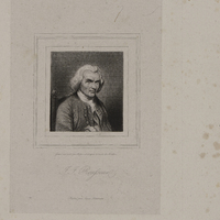 Vue imaginaire de Rousseau saluant son père à l'atelier. La porte ouverte laisse apercevoir la cathédrale Saint-Pierre
