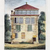 6e planche de l'Album Vues / de différentes habitations / de / J.J. RouSseau avec son portrait et le fac similé d'un air de sa composition, pour faire suite à ses œuvres. Paris : Impr. Lith. de C. de L., 1819 ([Paris]: de l'imprimerie de Firmin Didot, imprimeur du roi, de l'Institut, et de la Marine, rue Jacob, no 24)