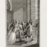 Pièce isolée de la suite de gravures (23) de Moreau-le-Jeune par Lorieux, semblable à celle gravée pour l'édition Cazin de 1780 (voir G2: p. 76-81) en contrepartie de la suite de l'édition de 1774 (G2: p. 27-39).