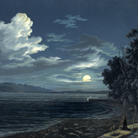 Reprise très tardive de la gravure de Jean-Michel Moreau (le Jeune) de 1778 représentant le premier tombeau de Rousseau sur l'île des Peupliers. Au centre, au premier plan, une famille se promène. Sur l'étang, à gauche, une barque avec quatre occupants. Dans le coin du bas à gauche, la femme qui prie, agenouillée et s'appuyant sur un bâton, de la première version, a disparu.